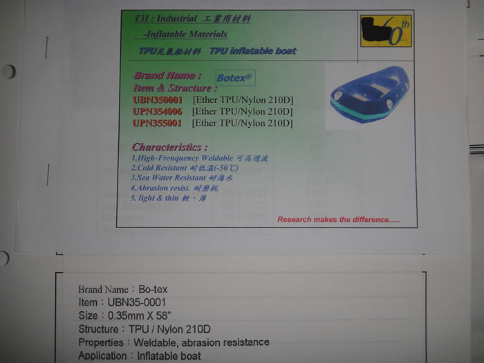 充气橡皮艇隔舱薄片:HYPALON面料的耐化学性和耐天候性使其在充气橡皮艇的制造中广泛应用,确保橡皮艇的耐用性和安全性