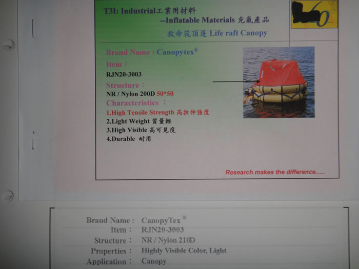 Hypalon救命筏顶蓬面料