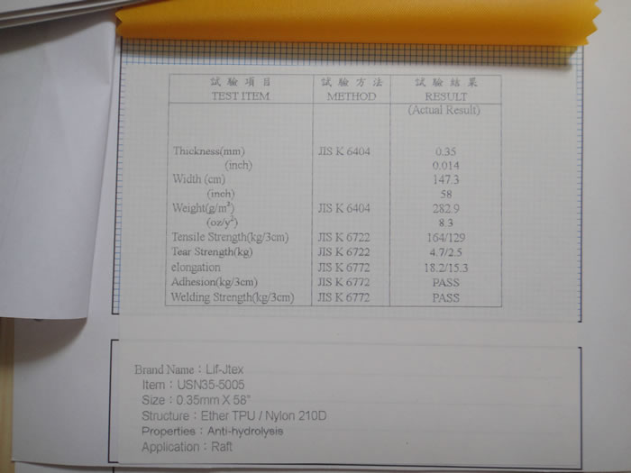 TPU充气救生衣面料样品卡